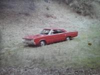 Here are some old pictures of my 67 Coronet 500 vert. The pics in the rain were taken at the 1991 "Mopars on the Beach" show at the Prince Georges Equestrian Center in Maryland about a year before I bought it. The picture on the trailer was on the day I bought the car and brought it home from Richmond, Virginia. The previous owner had painted the car Spitfire Orange (a Mopar color most often seen on 1977 Volare Road Runners). The car had an incorrect 1972 318 under the hood then (it has a 67 383 4 bbl now), ugly Keystone Klassics (detailed to match the orange paint on the body), and hood scoops from a 69 Super Bee. The picture taken on the highway with my buddy, Steve, hamming it up for the camera, was taken some time in the 90's, on Interstate 70, somewhere between the Mopar Nats in Indianapolis and home in Virginia, with the trunk loaded down with swap meet parts finds. Even though the car is now red instead of orange, it is still called the "pumpkin" by all my friends who knew me back then, because of it's orange paint job. The picture on Skyline Drive in Virginia, next to my buddy's 69 Barracuda was taken in 1998 just before I took the car off the road for body work, paint and the installation of a new drive train (that picture is out of sequence and should have been last). I did already have the chrome Magnums and red line tires by that point.