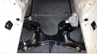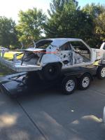 Its got an S60 rear with 4.56 gears (think that was a mistake) and a Gear Vendors OD. 30 inch tall tires. Tranny is a fully rollerized 727 with steel drum and A&A brake. Caltracs rear suspension. Aerospace front disc brakes and stock 11 x 2 1/2 drums in the back. Motor will be a 505 with Sidewinder heads. Shooting for 10.70's to 10.80's for the car out of the chute.