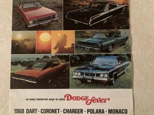 If you had gone to a Dodge dealership in 1968, there would have been three brochures discussing coronets. The first brochure contained the entire 1968 dodge lineup. I have included the paint colors. The color I chose for my car is in the bottom left-hand corner.